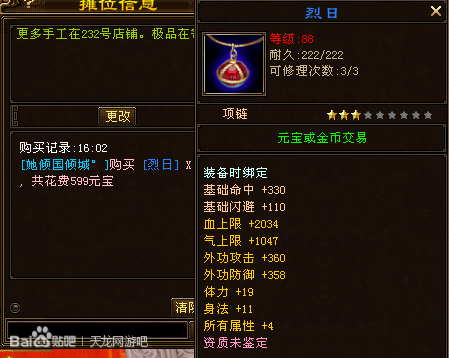 69楼的那个卖出去的4星项链,是我大前天晚上花了1000YB逛摊位的时候收的。好吧,随便就赚了1000YB,还有比这更简单的么?