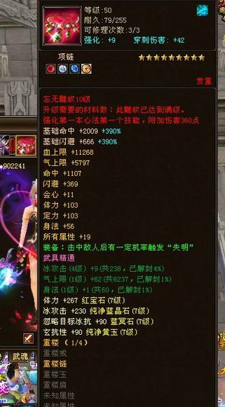 一个90万装备评分的峨眉大神。果然,劈日斩月的重楼链给了果果,而没有新石头、没有强化的果果,装备评分竟然90万,貌似这有点不科学吧?