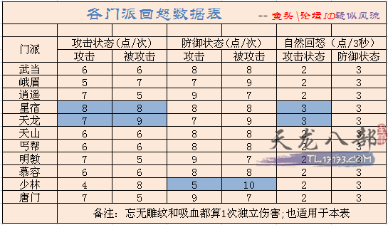 5、星宿天龙攻击状态下总回怒点数比其他门派多4点。其他门派12,星宿天龙是16