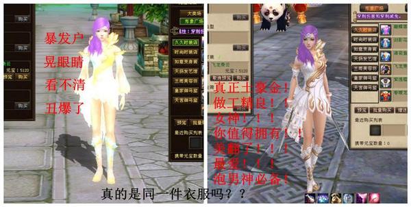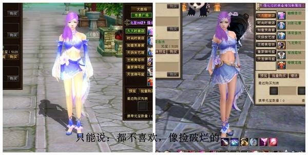 小女子在新区玩了一天,42神器还没做呢,先逛上了败家一条街之前还说再买就剁手的……我大天龙V587,让所有雌性生物变千手观音,不惧剁手!To玩过一次3D唯美端的老玩家:经典端你花了好几千弄的一身行头,在唯美端像渣一样,丑爆。然后你们就怒删客户端。其实唯美不是没有好看的衣服脸型发型,只是……唯美好看的,都是经典不好看的;经典好看的,在唯美不好看。知道真相的我眼泪掉下来!坑爹么这不是!我在经典端美个滋的走在街上,唯美端的人看我会笑死。反过来也一样!!难道以后要准备两套衣柜,泡老公的时候先问:帅哥,你是用哪个端的?哦,唯美啊,稍等一下,化个妆来见你。然后飞速跑去败家街么。。。想想就恐怖建议策划这么搞个:衣服脸型发型一类的,可以自己匹配绑定对应的衣服,自己用唯美端显示飞龙乘云,别人用经典端看到的是春风余雪……我太有才了!