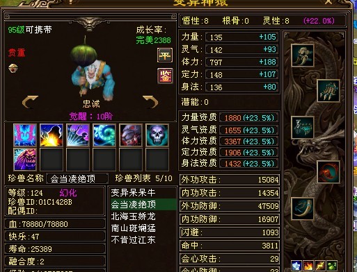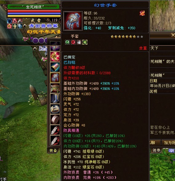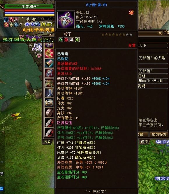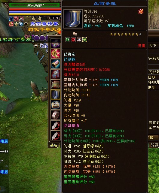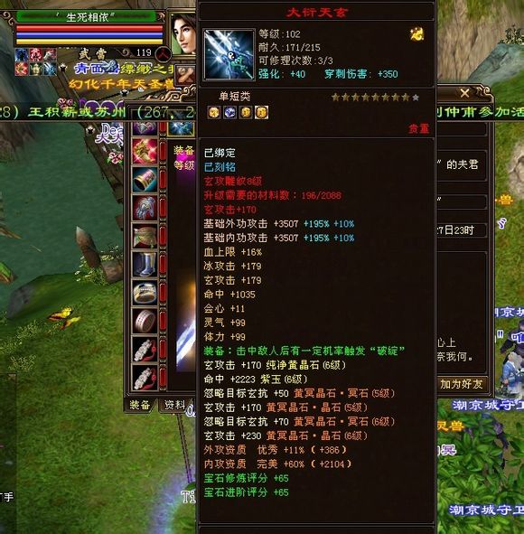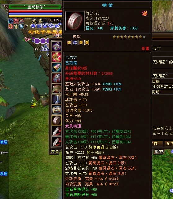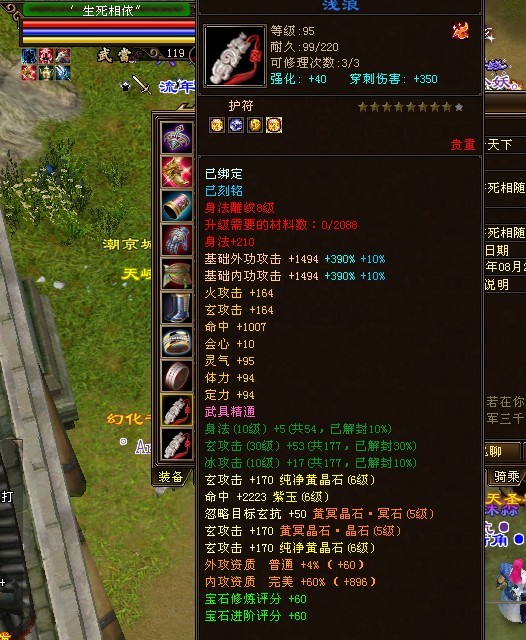 独步江湖的第一武当,别看装备评分低,这可是六级石头武当,强化也都40了,真元是橙、紫混搭的。可是就是不知道为什么,装备评分会这么低。