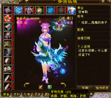 又见炫影家族的大唐门,除了新石头是五级的,其他都是六级石头的配置,虽然装备评分有点低,但是这还号还算是蛮暴力的。