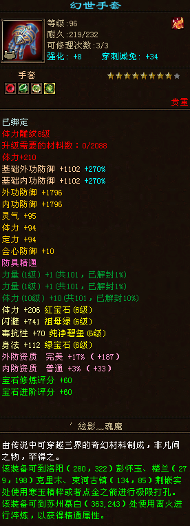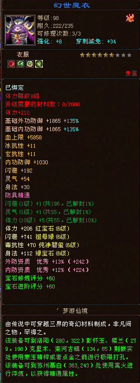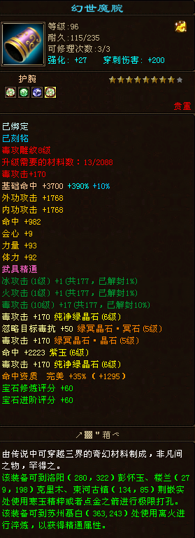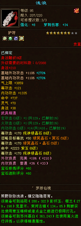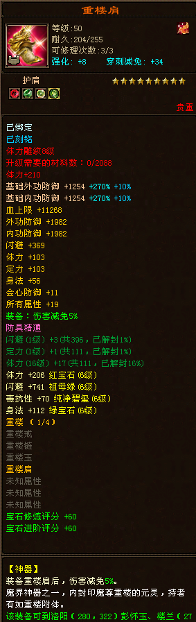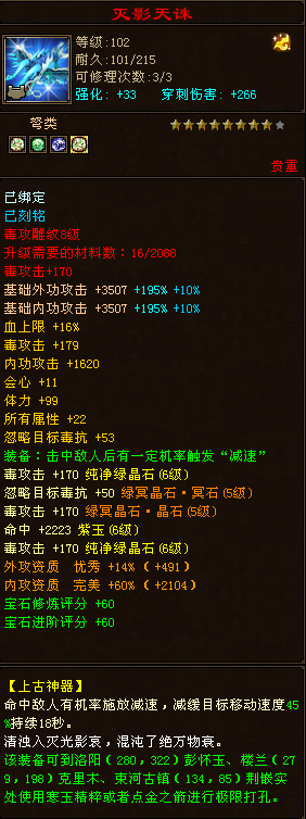 又见炫影家族的大唐门,除了新石头是五级的,其他都是六级石头的配置,虽然装备评分有点低,但是这还号还算是蛮暴力的。