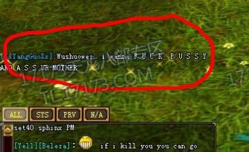 这是某**玩家在天龙八部美国服务器当着全世界人的面刷屏骂另一个**玩家。