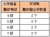 小提示:若一件装备上存在双极雕纹,则按照其中等级最高的雕纹进行计算。每个玩家最多领取8个雕纹融合符。