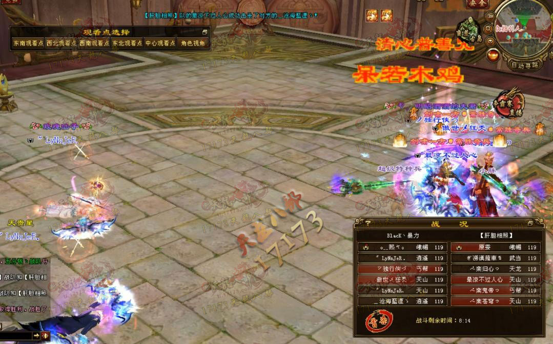 ~~~)。大A战队接着集火肝胆的天龙乐归心,肝胆峨眉迅速补血,虽然归心还是倒下了,但是为肝胆队员继续削弱暴力战队其他人员血量赢得了时间,缺少峨眉的大A战队队员一个个倒下,最后只剩下丐帮独行侠一人面对肝胆四名队员。独行侠开横扫想做最后抵抗,肝胆的丐帮鬼帝也开横扫,场上出现两个丐帮对着横扫的局面,最后大A战队三连败。