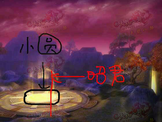 同时要注意,BOSS所在的地方都是同心圆。而每个BOSS都会站在小圈里。下面图中,红色是昭君那个圈圈的边缘所在的地方,黑色圈是昭君需要注意的参照物。