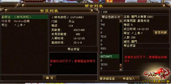 而来自华北网通雁门关大区的雁门无双,以集全区精英于一帮的豪气,占据全服帮会百名榜头把交椅。