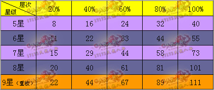 就是说当你点到20、40、60、80、100左右时,每个星级的每个精通能给你带来多少体力。